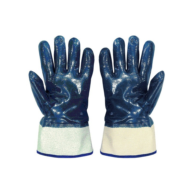 Перчатки рабочие трикотажные с полным нитриловым покрытием. Манжет — крага